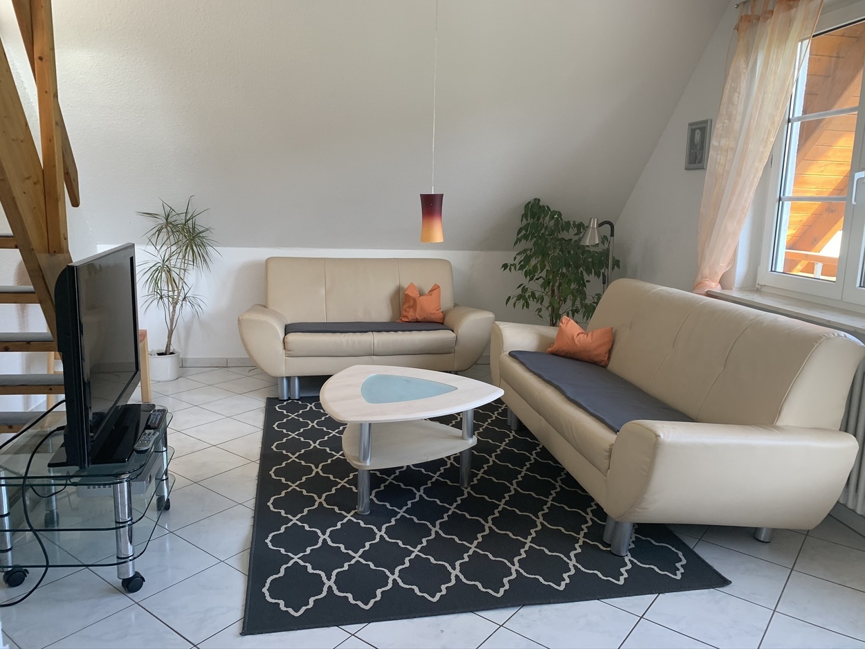 Ferienwohnung Nr. 2 im Dachgeschoss für 2 Personen, in der man einen herrlichen Panoramablick vom Balkon aus hat. 50 € für zwei Personen zzgl. Kurtaxe pro Person/Nacht. Jede weitere Person 10 Euro.