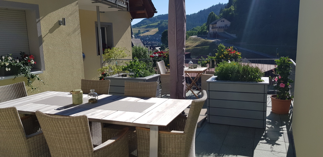 Unsere Ferienwohnung ist vollständig, modern und liebevoll eingerichtet. Sie liegt in sonniger und zentraler Lage des Ortsteiles Bad Griesbach. Zur Wohnung gehört auch eine großzügige Sonnenterrasse, auf der sie Entspannung finden und einen herrlichem Blick über Bad Peterstal-Griesbach genießen können.