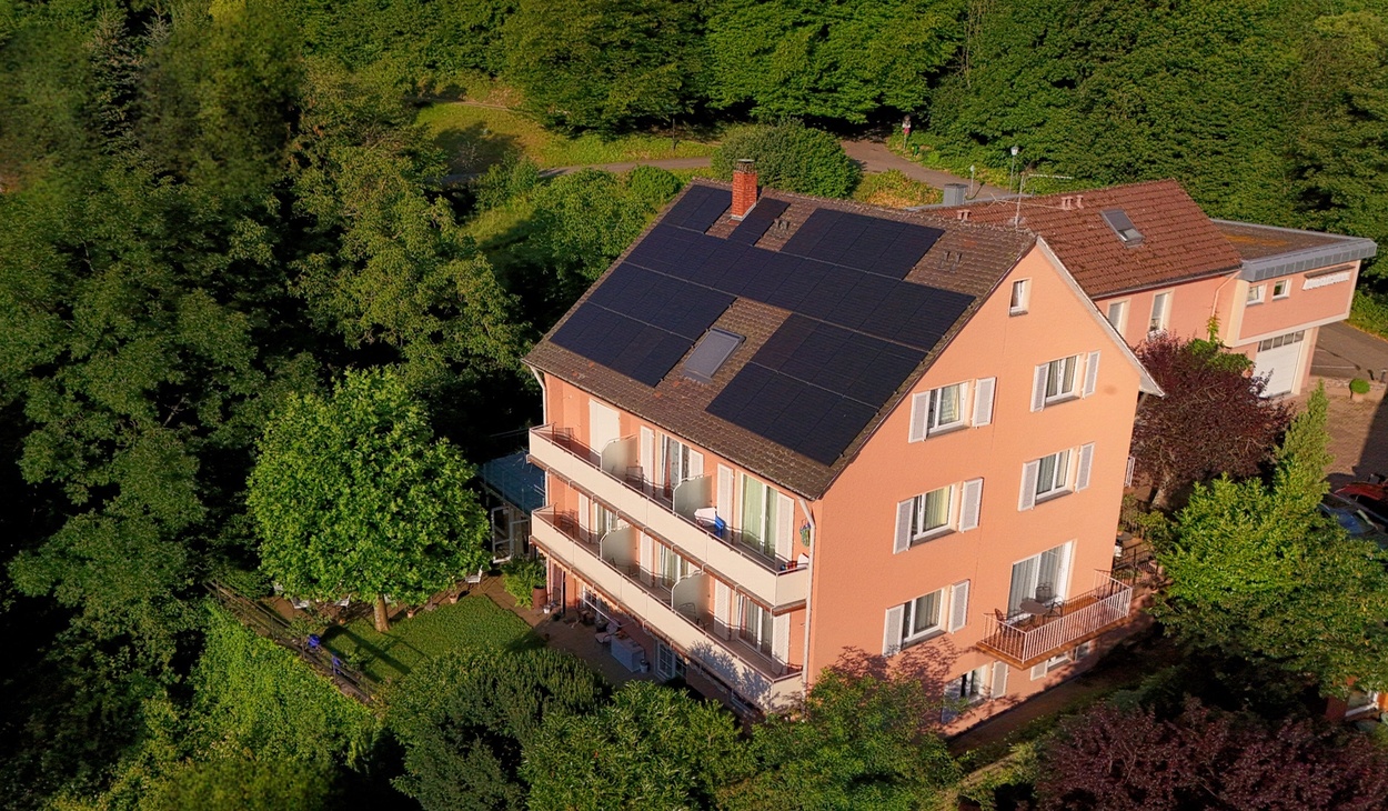 Direkt am Waldrand, oberhalb vom Ortszentrum von Badenweiler, liegt die "Morgensonne". In wenigen Minuten ist man zu Fuß an der Cassiopeia Therme und am Kurpark. Von allen Zimmern haben Sie einen herrlichen Blick in die liebliche Landschaft des Markgräflerlandes und auf die nahen Schwarzwaldberge. Der große Garten mit Liegewiese und die wunderschöne Sonnenterrasse sind besondere Merkmale des Hauses.