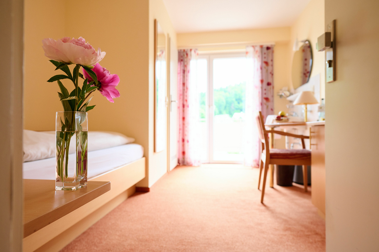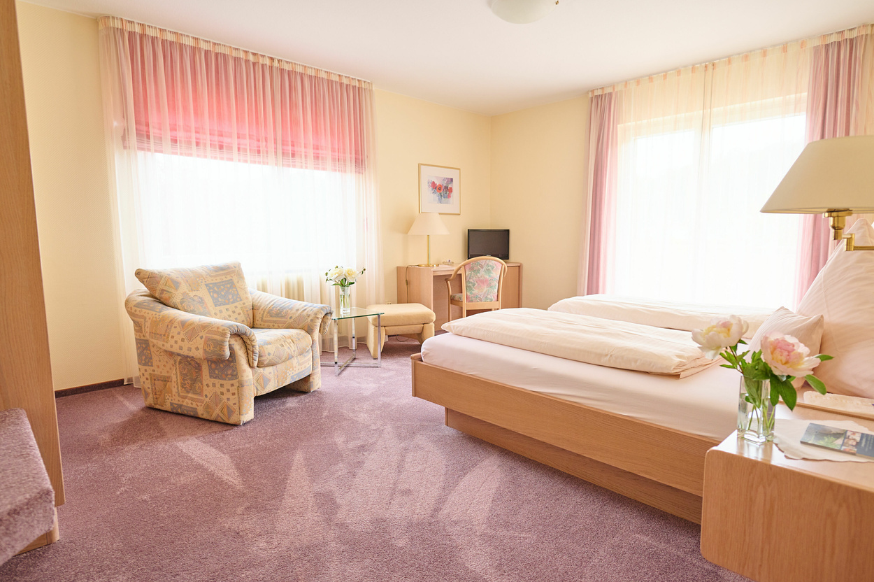 Total im Grünen liegt das familäre Hotel mit seinen 20 Zimmern - 5 Doppel-, 11 Einzelzimmer und 4 Appartements, alle für Nichtraucher. Ca. 28 Gäste können hier wohnen und sich verwöhnen lassen.Die Zimmer und Appartements sind modern eingerichtet, alles ist hell und freundlich.