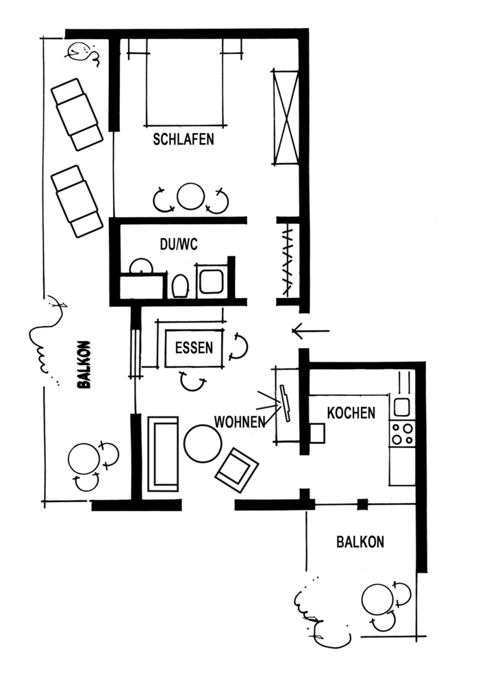 FerienwohnungenUnsere komfortabel eingerichteten, geräumigen Ferienwohnungen verfügen alle über ein Wohnzimmer, ein Schlafzimmer, eine Küche, ein Badezimmer, einen Balkon sowie WLAN und Kabel-TV. Die Nutzung des Fitnessraums und der Gästewaschküche sind inklusive. Es gibt 5 Wohnungen, die zwischen 50 qm und 70 qm groß sind und Platz für 2 bis 4 Personen bieten.