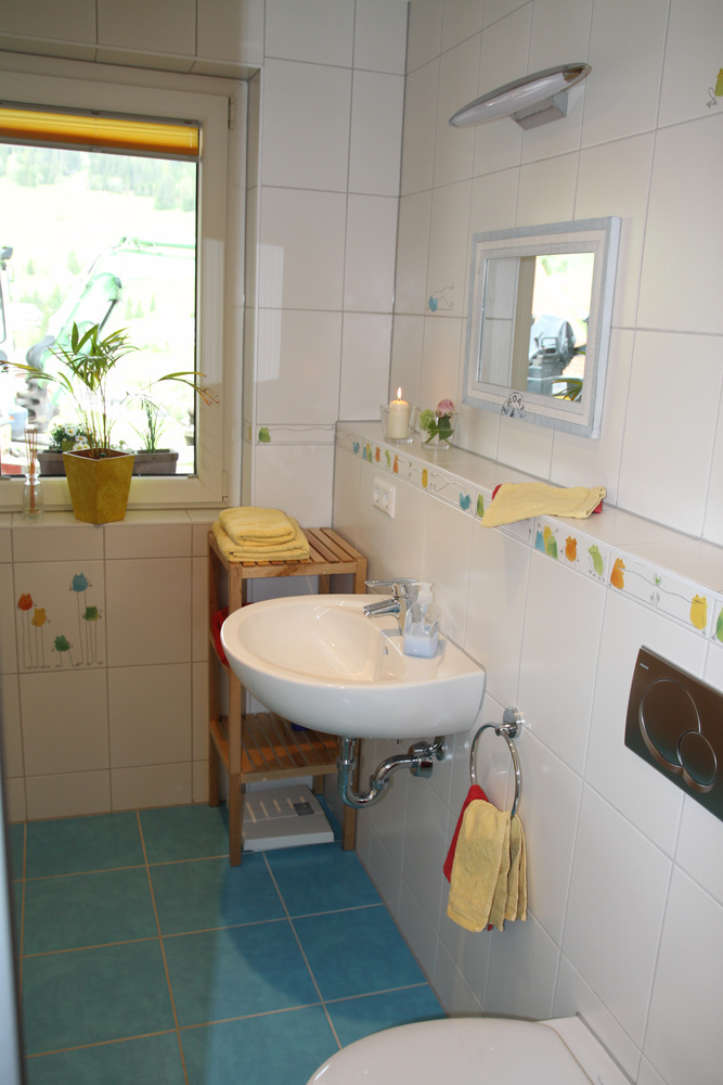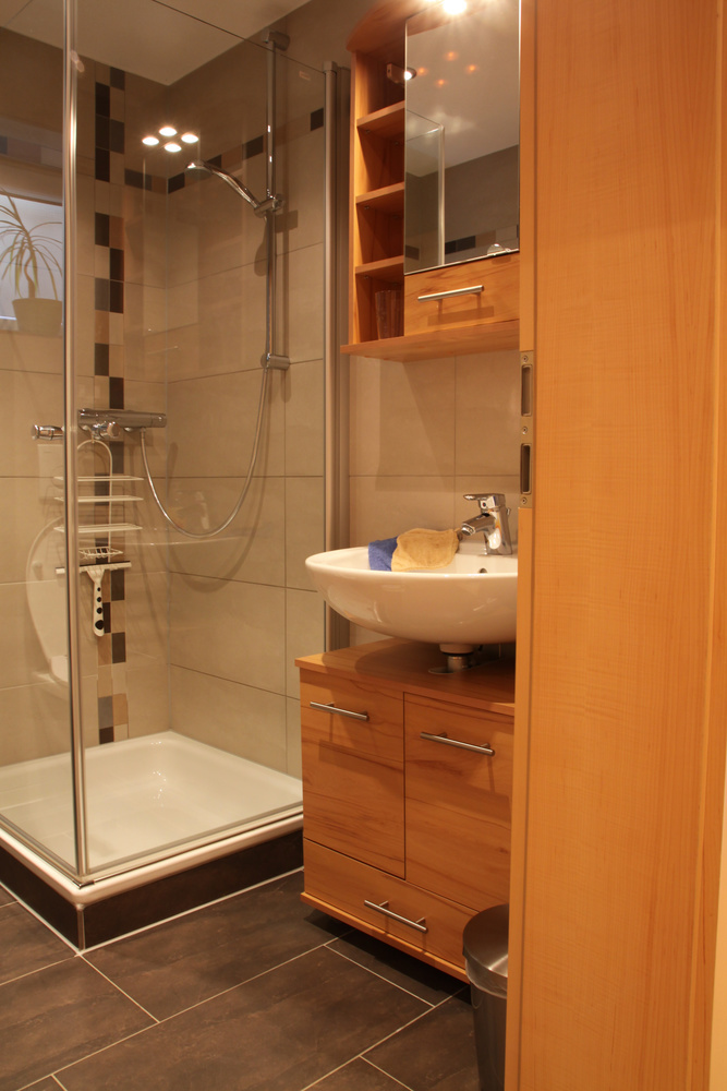• Badezimmer, Dusche, WC, Handtuchheizung, Spiegelschrank und Fön