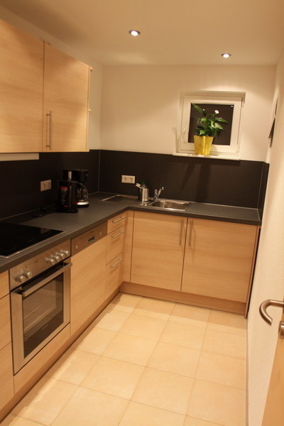 • Hochwertig ausgestattete Küche mit Kühlschrank inkl. Gefrierfach, Spülmaschine, Ceran-Kochfeld mit Abzugshaube und Backofen, Kaffeemaschine, Toaster, Wasserkocher, Mikrowelle, Milchaufschäumer, Grundausstattung Gewürze