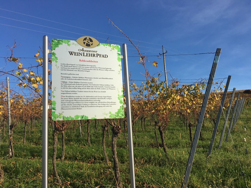Im Wein- und Winzerort wird Wein bereits seit 1989 umweltschonend angebaut. Mehr über Weinsorten erfahren sie auf dem Auggener Weinlehrpfad, der sie durch die malerische Rebenlandschaft führt. Wählen Sie zwischen 2,3 km. 4,1 km und 7,9 km Länge. Rund 50 Tafeln informieren auf dem Lehrpfad über die Geschichte, den Aufbau, die Pflege sowie das Sortiment der kostbaren Reben in der Weinbaugemeinde. Auch für Familien mit Kinderwagen, sowie Nordic-Walking-Fans ist dieser Lehrpfad durch seine leichten Steigungen geeignet.
