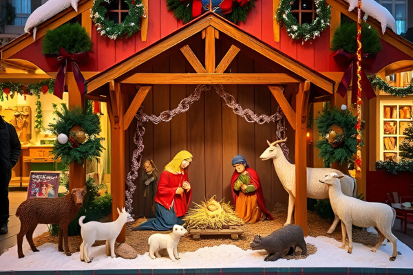 Weihnachtsmarkt StuttgartWeihnachtsmarkt in Stuttgart mit Kindermächenland und einer lebenden Krippe.