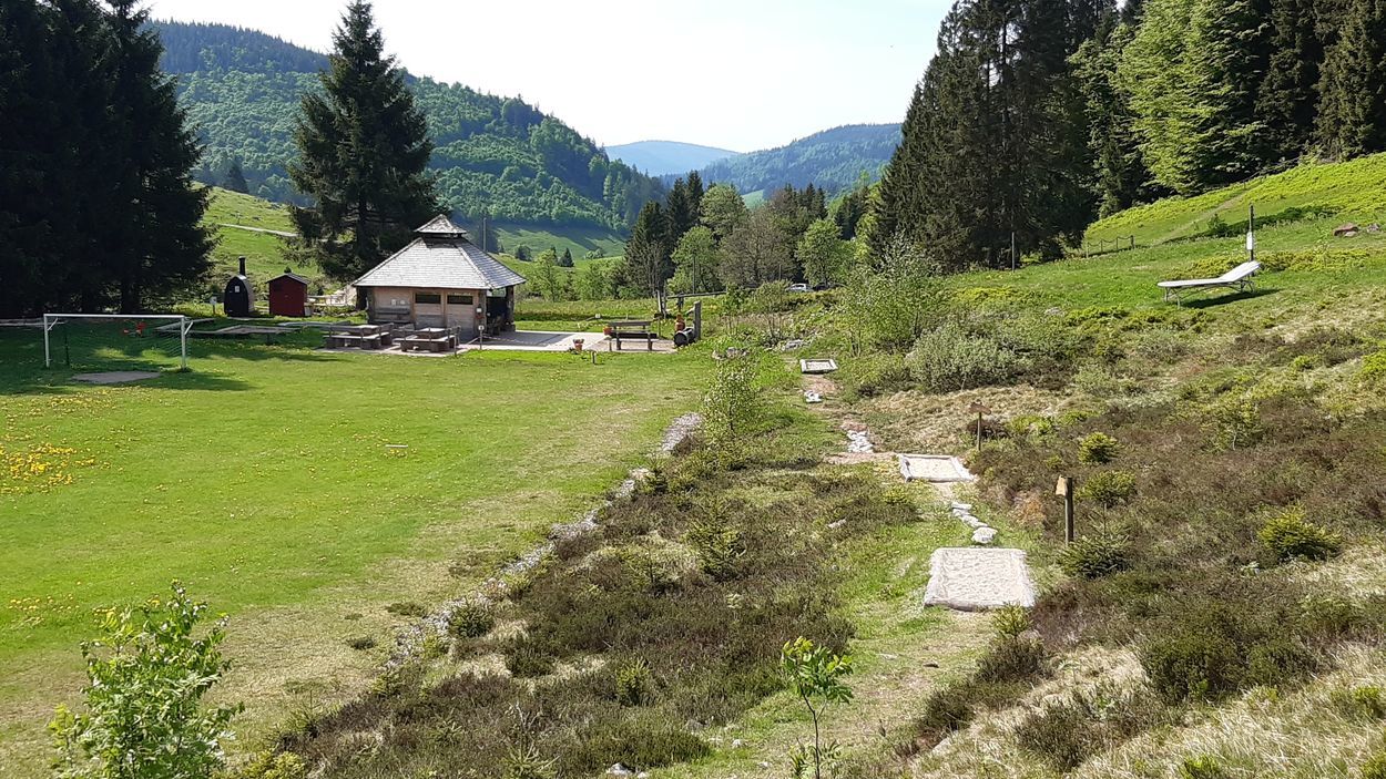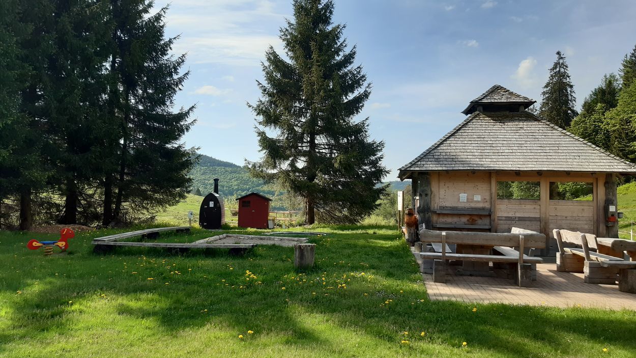 Vor Ort gibt es außerdem eine Grillhütte (mit Toilette), ein Trampolin und ein natürliches Kneippbecken im Bergbach.