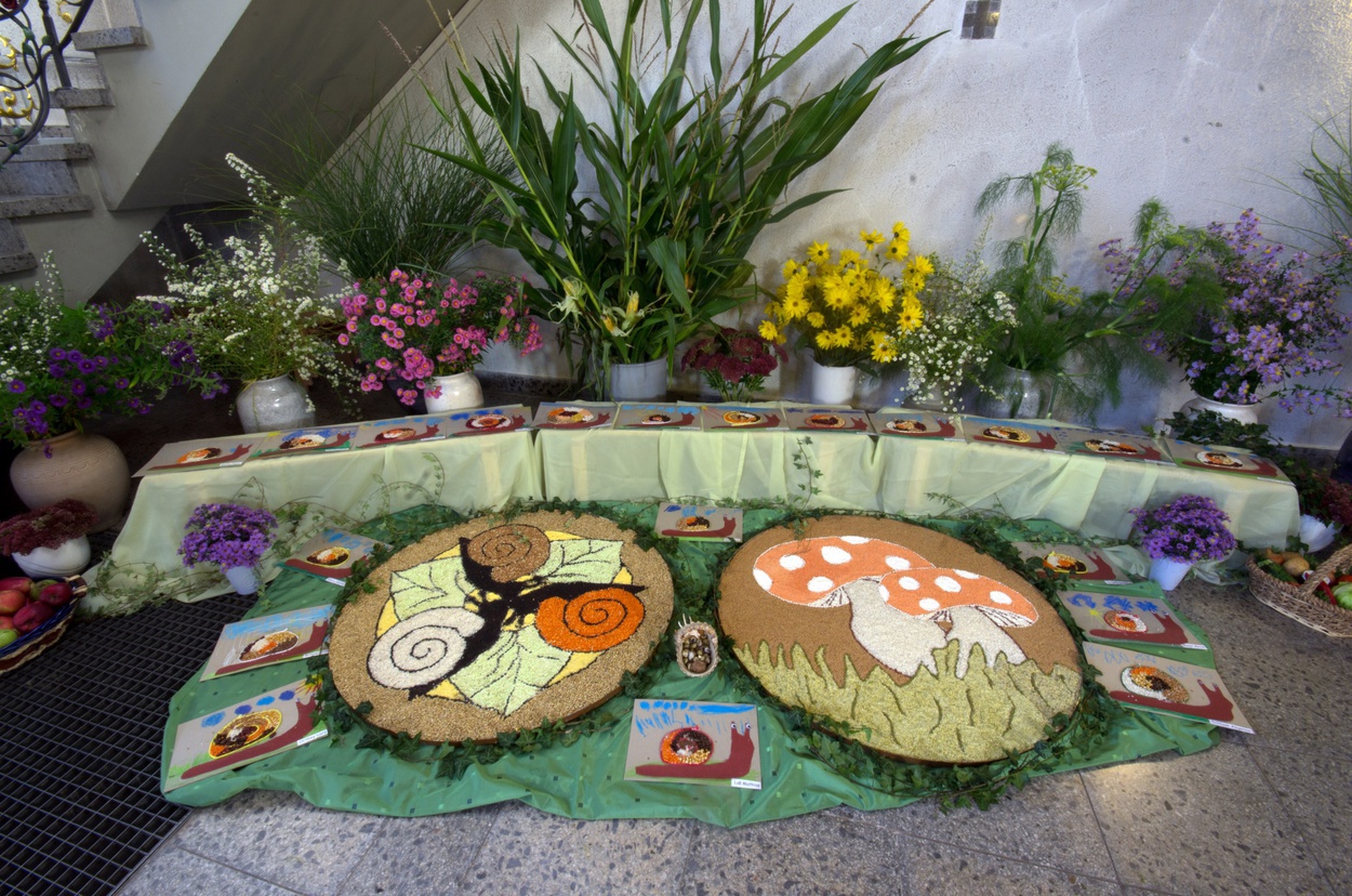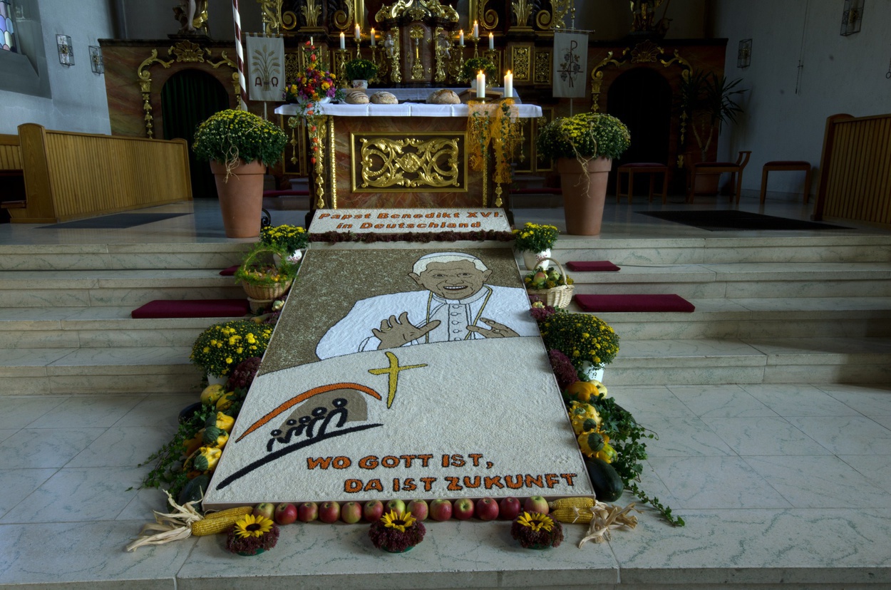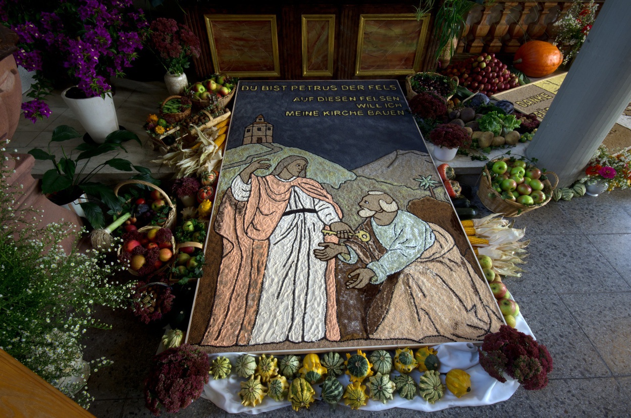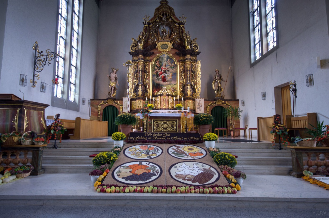 Farbenfrohe Körner- und Früchtebilder mit biblischen Motiven sowie der beeindruckende Erntealtar schmücken am Erntedankfest die katholische Kirche „St. Afra“. Danach kann man die Kunstwerke noch 14 Tage lang in der Kirche bewundern. Bei der Prozession am Festtag, begleitet von der Trachtenkapelle, führen die Kinder wunderschöne Erntestäbe aus Ähren, Kränzen, Kreuzen und Kronen, geschmückt mit Blumen und Obst, mit sich.