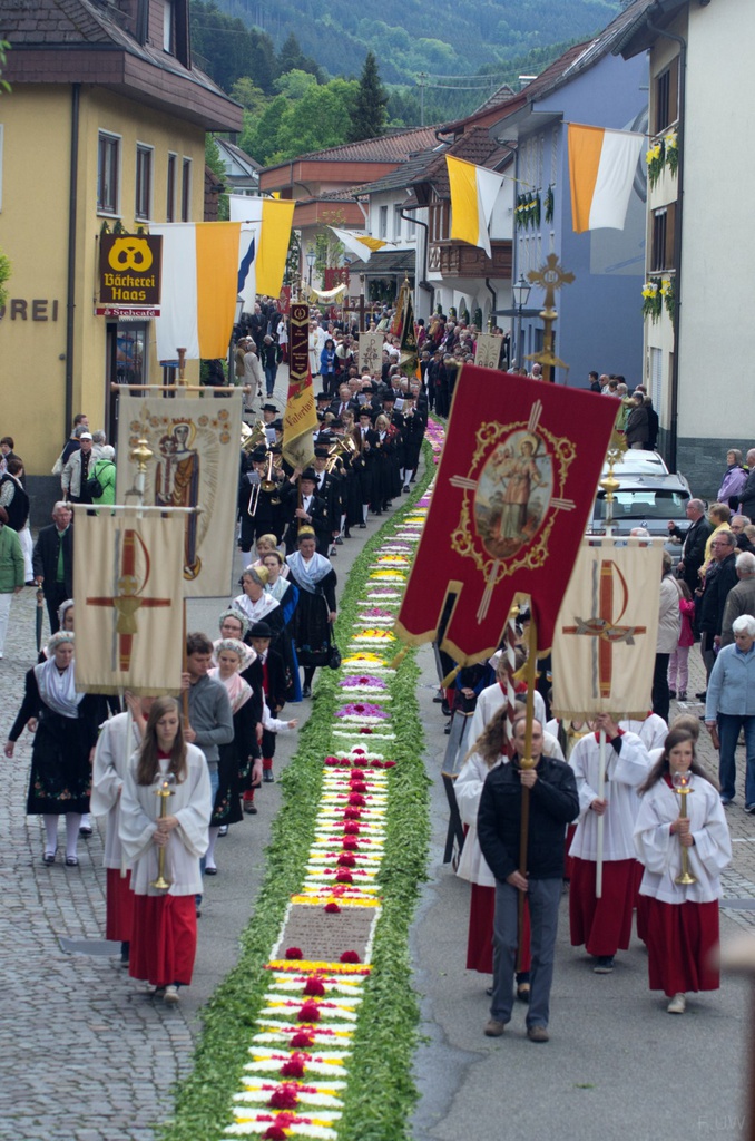 An Fronleichnam, am sogenannten „Herrgottstag“ legen die Bewohner von Mühlenbach aus Millionen von Blüten einen ein Kilometer langen und 60 Zentimeter breiten Blütenteppich durch den Ort. In den Tagen zuvor haben sie Millionen von Blüten gesammelt. Entlang des Blumenteppichs bewegt sich am Festtag unter Böllerschüssen die Prozession mit dem Allerheiligsten. Begleitet von Trachtenträgern, den Abordnungen der Vereine mit Ihren Fahnen und den Klängen des Kirchenchores und der Trachtenkapelle.Erntedankfest